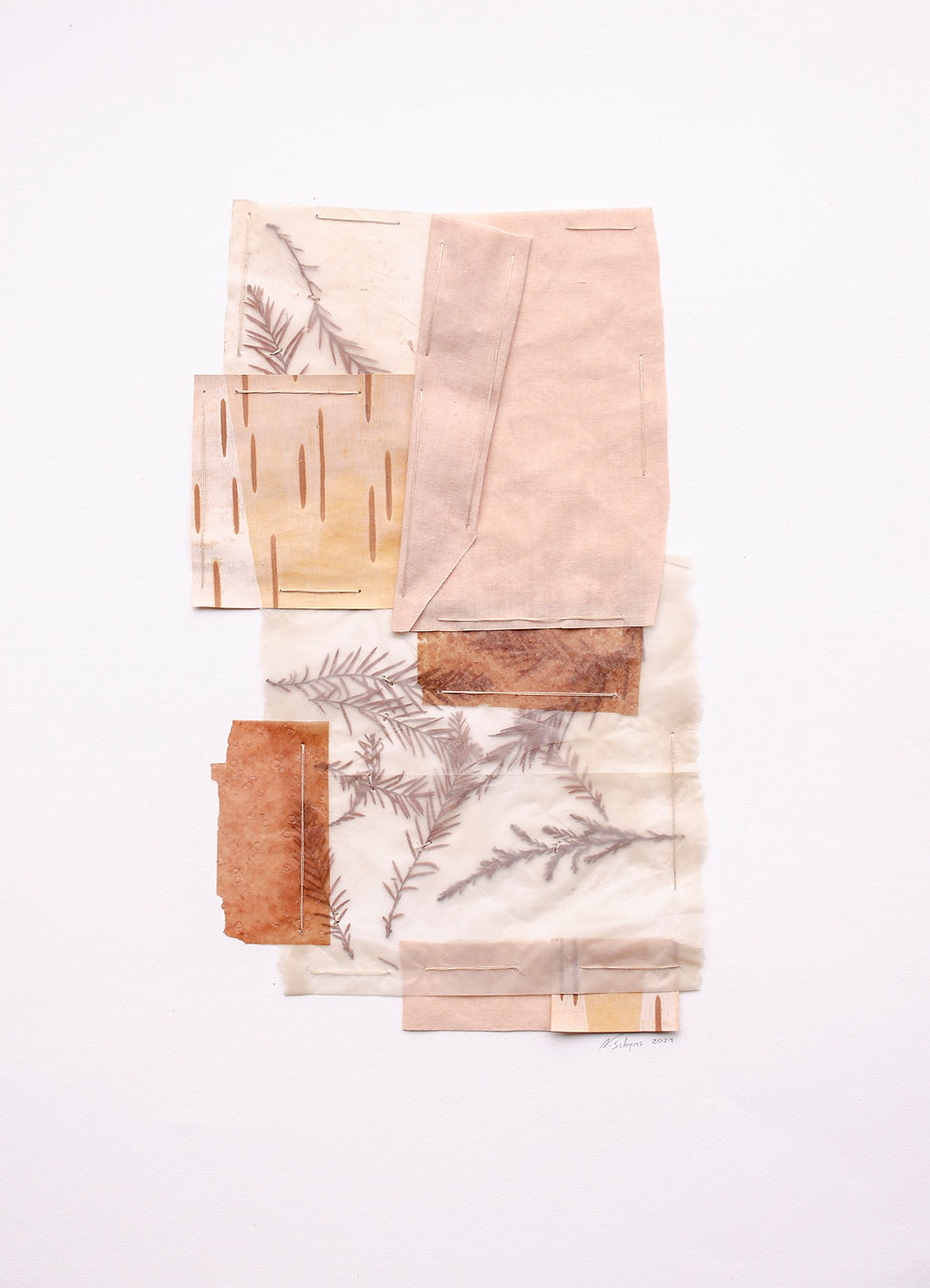 Just earth pigments and soy milk on paper. And for the collages: coffee infused sheets of bacterial cellulose, dried flowers and cotton thread.
